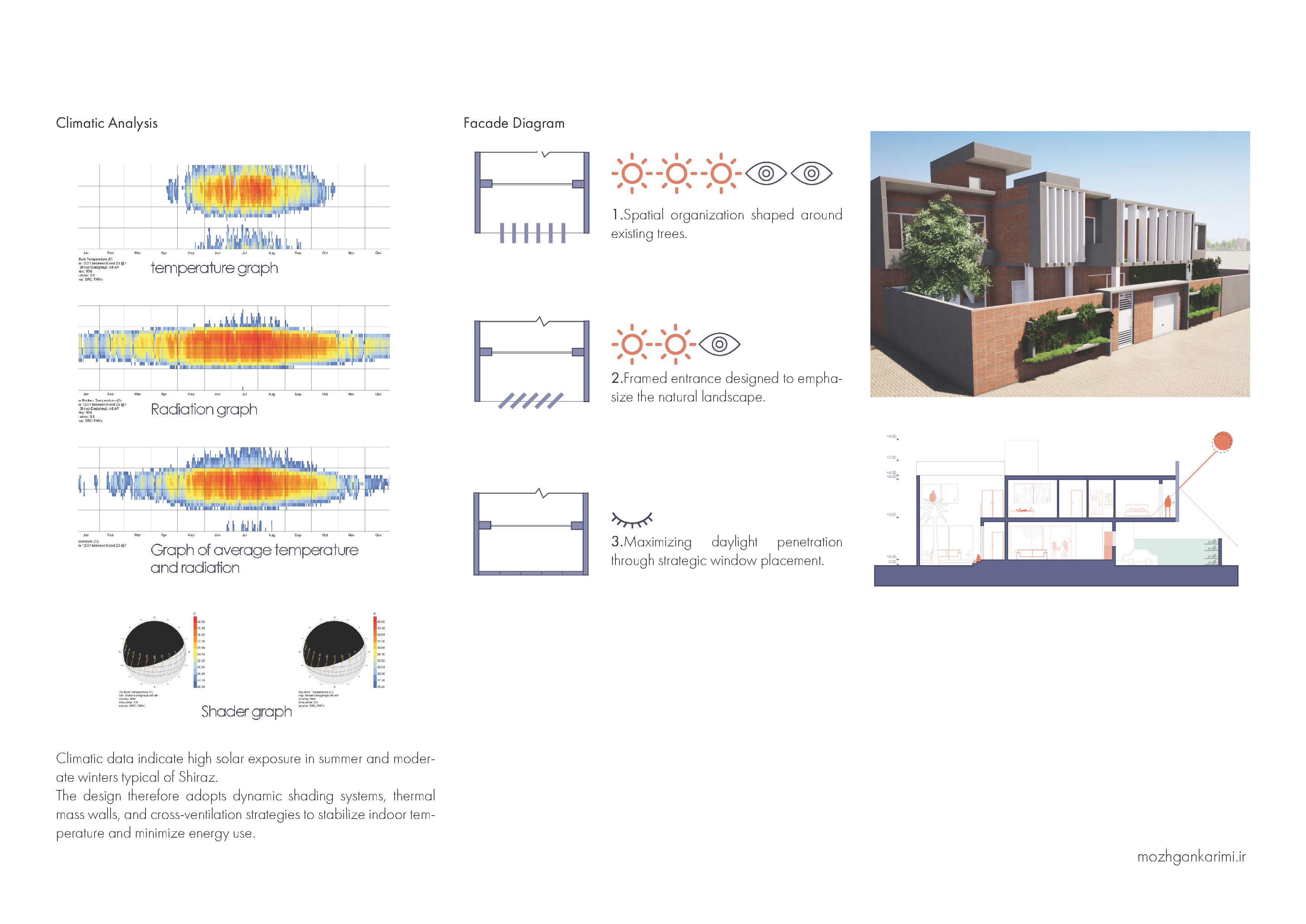 This project was developed under my academic supervision within an architectural design studio exploring the relationship between nature, privacy, and thermal comfort in residential environments.